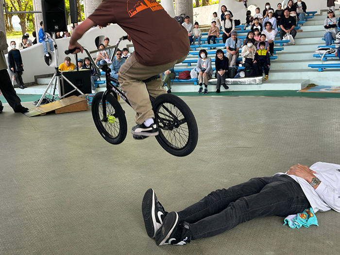 先週末は太閤山ランドで開催されたママスキーパーティイベントにてBMX&スケートボードショーをステージで行いました!