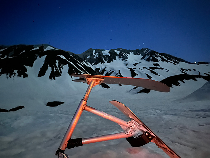 テント泊だから日没ギリギリまで滑れる充実感!午後7:00の雷鳥沢