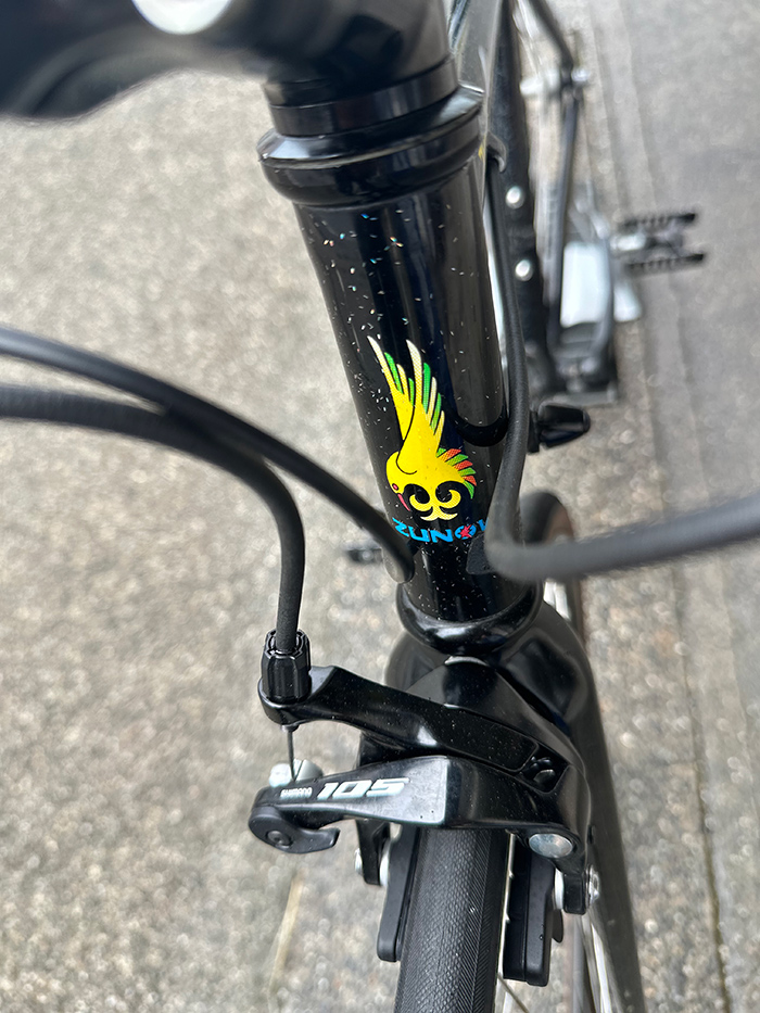 性能にもこだわり、シマノの最新ESSAコンポでギア比激広。幅広バーでカスタムして、今の空気感も兼ね備えた快適なフラットバーロードに仕上げました。