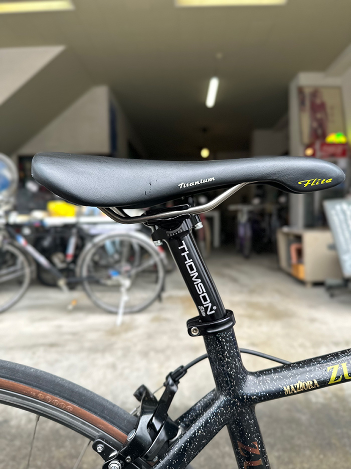 スタイルが出やすいシート周りはトムソンセットバックシートポスト、セライタリアのチタンレールサドルを装備しているので、毎日の生活がもっと楽しく、乗るたびに愛着が湧いてくる、世界に一台だけの自転車です