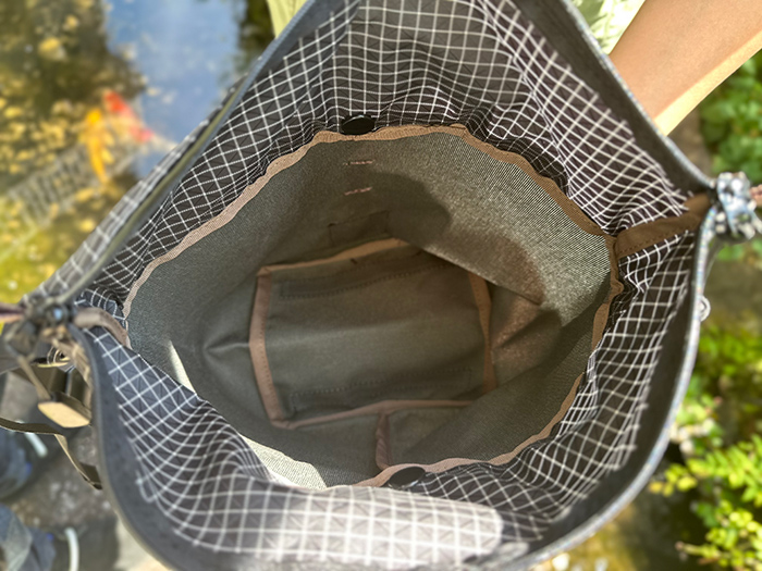 街から山まで、サコッシュの形状なのに最大5リットルまで収納できるロウロウマウンテンのタビチビトートバッグ。