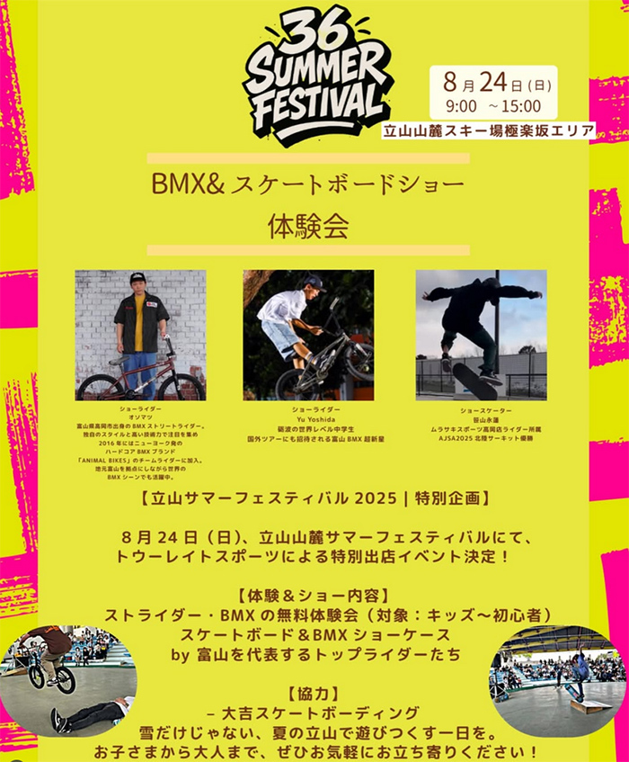 8/24は立山山麓スキー場にて36サマーフェスティバル!BMX体験&ショー行います
