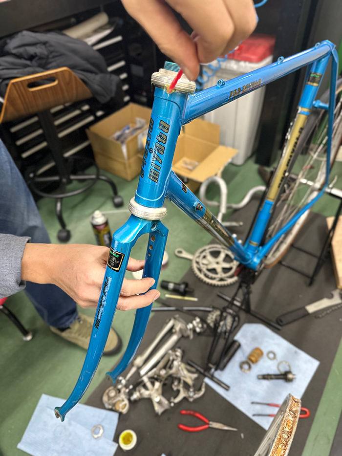 時間がかかるサビ落としやバーテープ剥がしなどはお客さんに手伝ってもらいながら二人三脚で仕上げて行きました