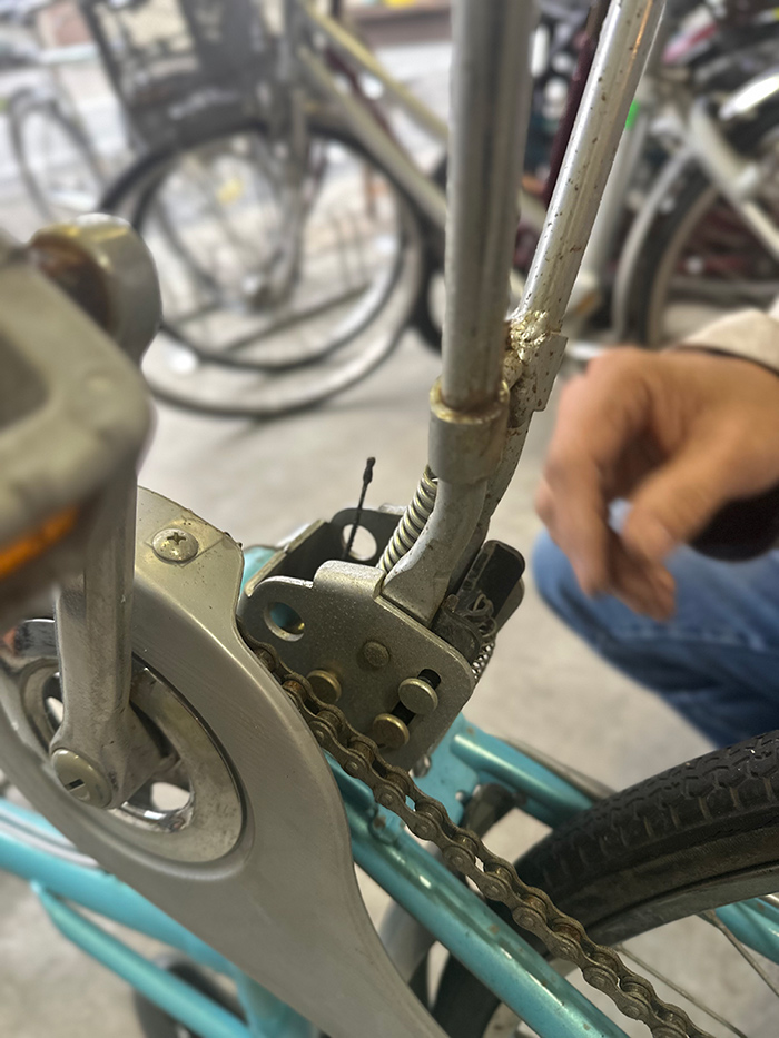 こちらはガチャリンコシステムを整備中、乗れるように仕上がった自転車は店頭に並べていますので気軽に乗りたい方はどうぞご来店お待ちしております(中古ママチャリ8,800円から)
