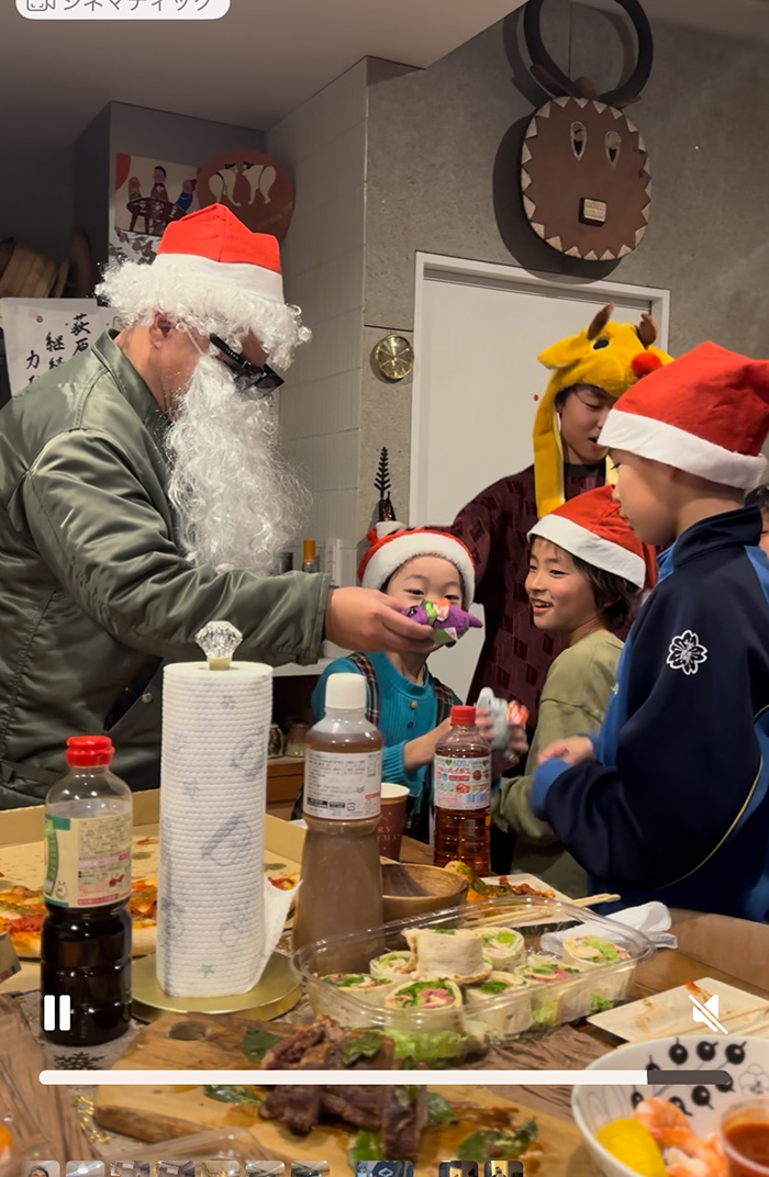 待ちに待ったクリスマスパーティ。バッドアスサンタの登場もありで来年も頑張ってね。