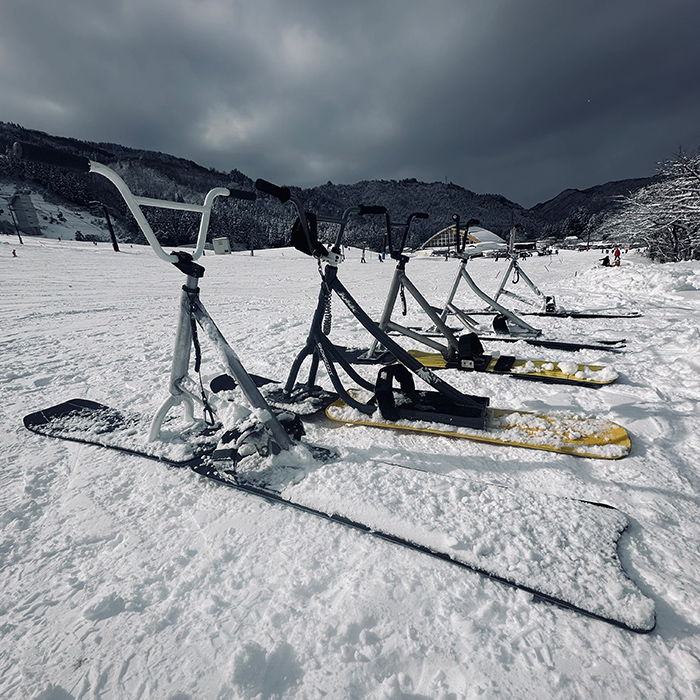 フルサスペンションビッグブラザースノースクート、SNOWSCOOT DOCキッズモデルなど-ポールコースでの試乗も出来る!