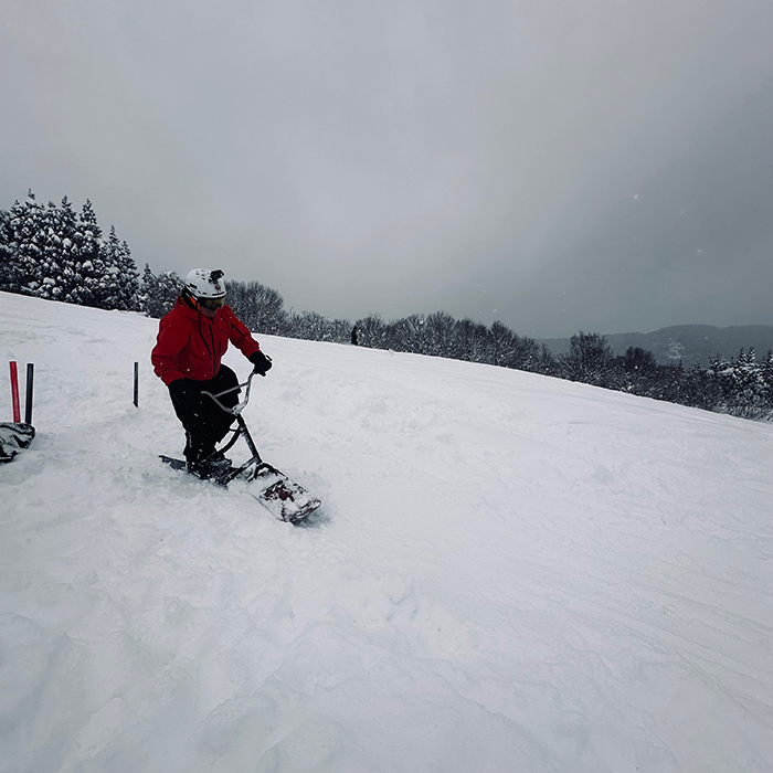 - 自身のスノースクート及びスノーモトを所有し、制限された旗門で滑ることが出来ること