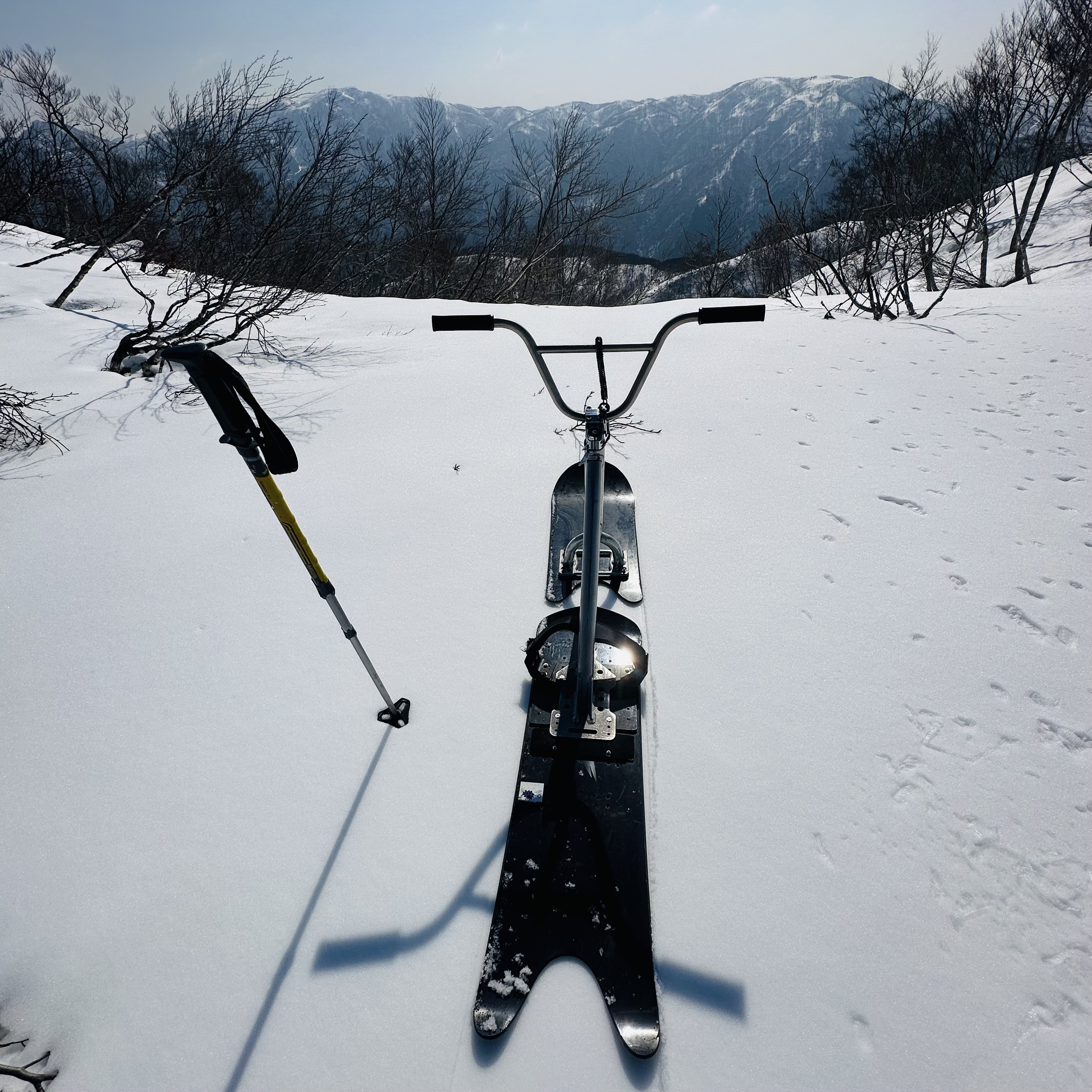 春は自転車もスノースクートも楽しめる贅沢なシーズンです。